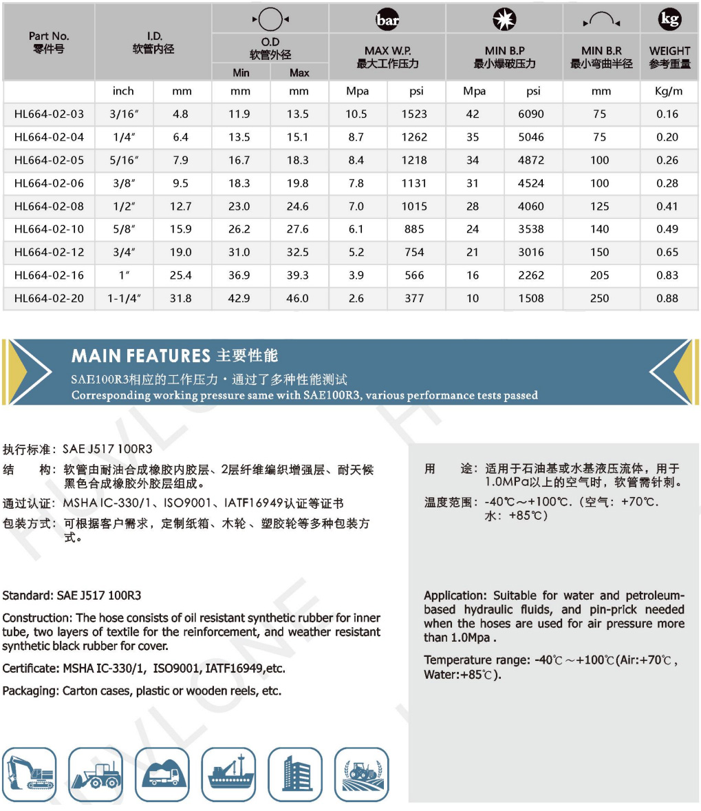 產(chǎn)品用途:適用于石油基或水基液壓流體,用于1.0MPa以上的空氣時,軟管需針刺。
