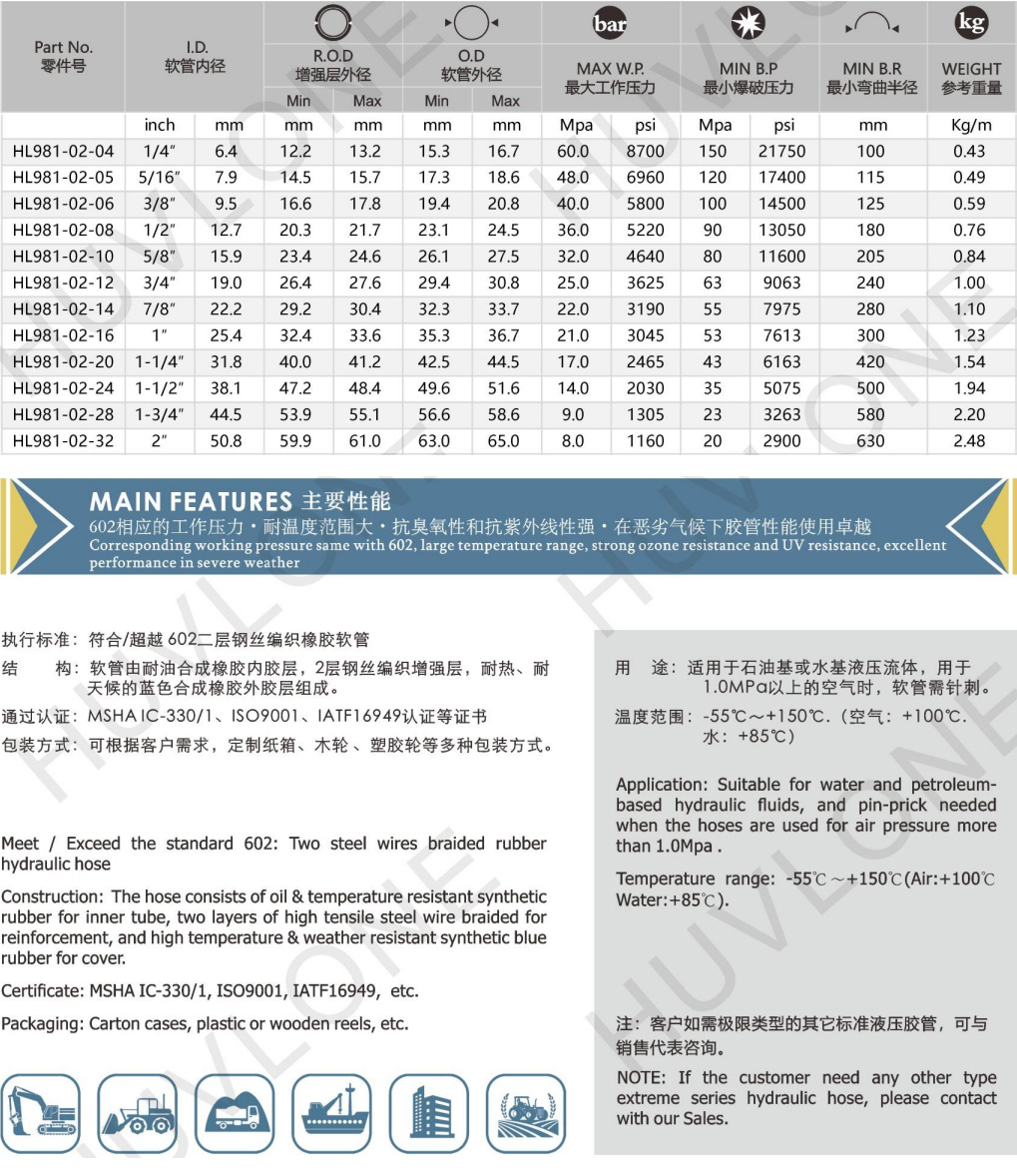 符合/超越602二層鋼絲編織耐高低溫橡膠軟管
