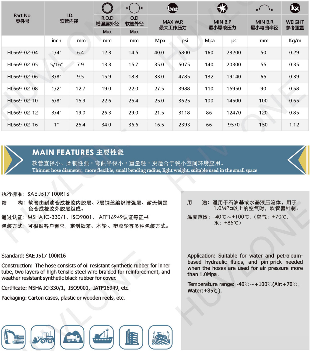 Product Usage:Suitable for water and petroleum-based hydraulic fluids,and pin-prick needed when the hoses are used for air pressure more than 1.0Mpa.