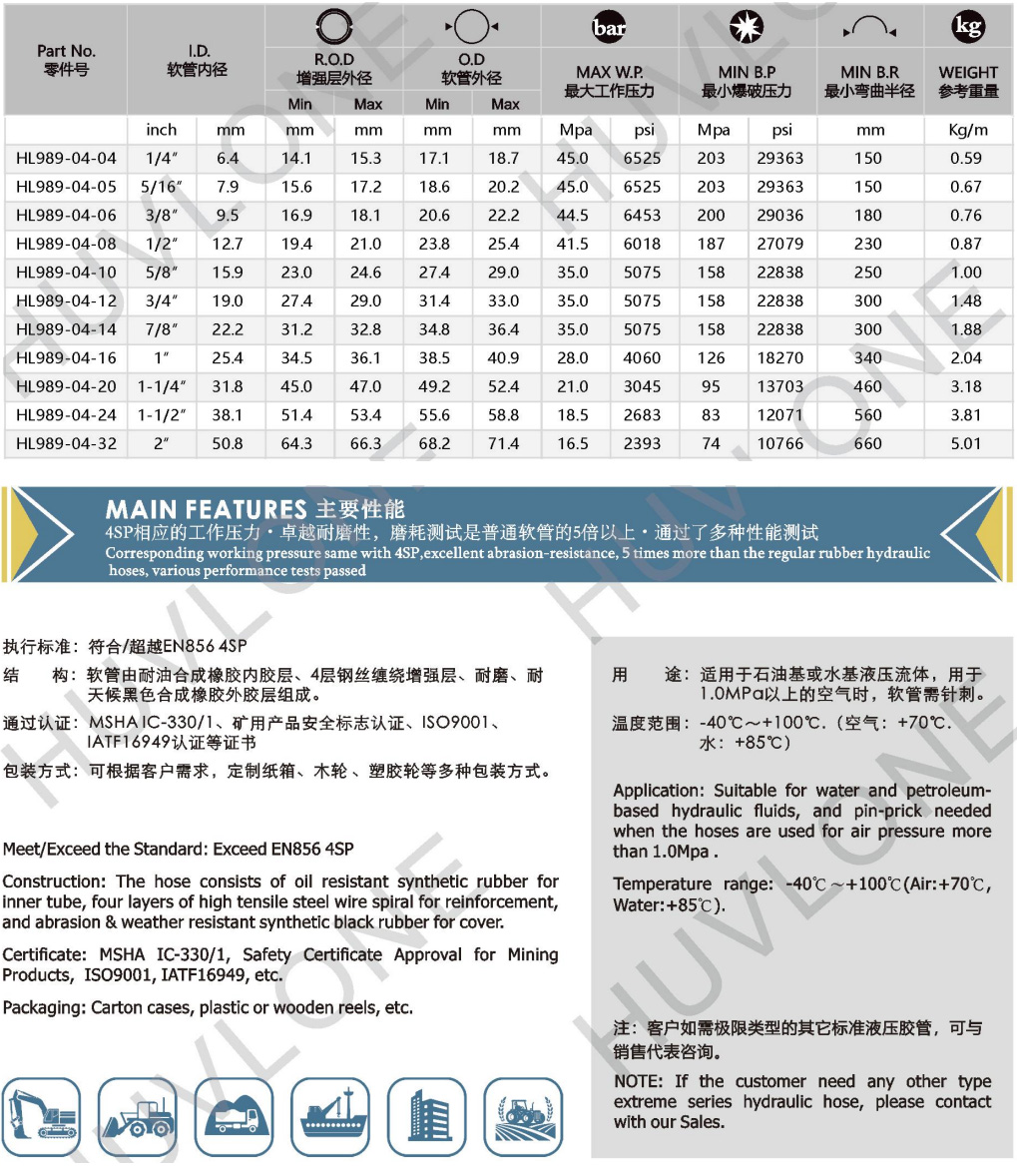 Meet/Exceed DIN EN856 4SP Four steel wires spiral rubber hydraulic hose with abrasion - resistance
