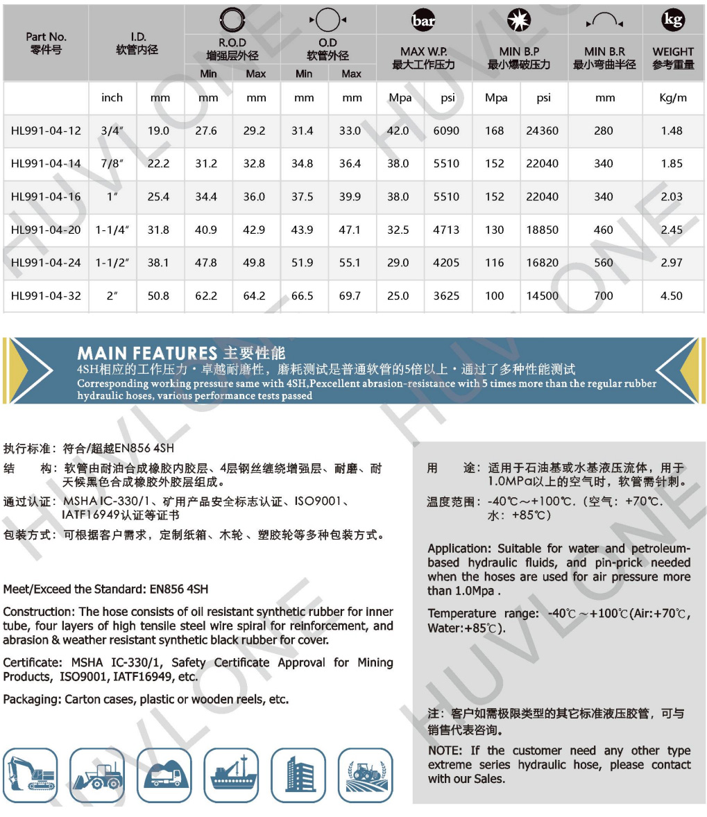 Meet/Exceed DIN EN856 4SH Four steel wires spiral rubber hydraulic hose with abrasion - resistance