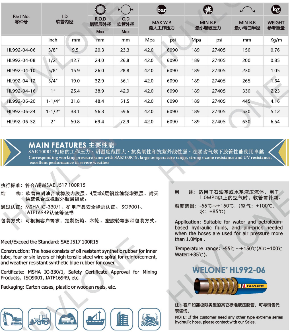 Meet/Exceed SAEJ517 100R15 Four steel wires spiral rubber hydraulic hose with high & Low temperature - resistance