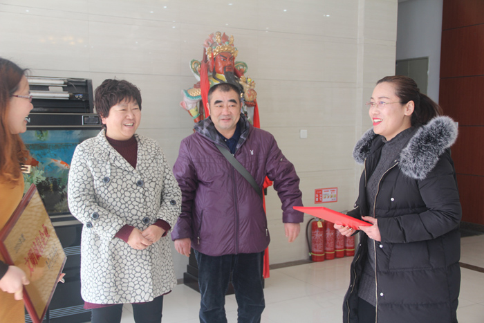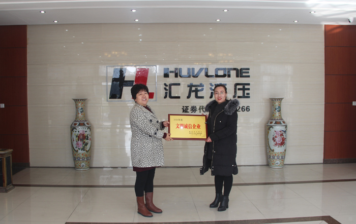 2017年2月24日上午10點,漯河市工商局辦公室張主任、漯河經(jīng)濟(jì)開發(fā)區(qū)工商分局于局長及漯河經(jīng)濟(jì)開發(fā)區(qū)后謝鎮(zhèn)工商所劉所長一行來到公司,對匯龍液壓獲得“2016年度文明誠信企業(yè)”進(jìn)行授牌及表彰,公司總經(jīng)理趙會芳代表公司接受榮譽(yù)并合影留念。