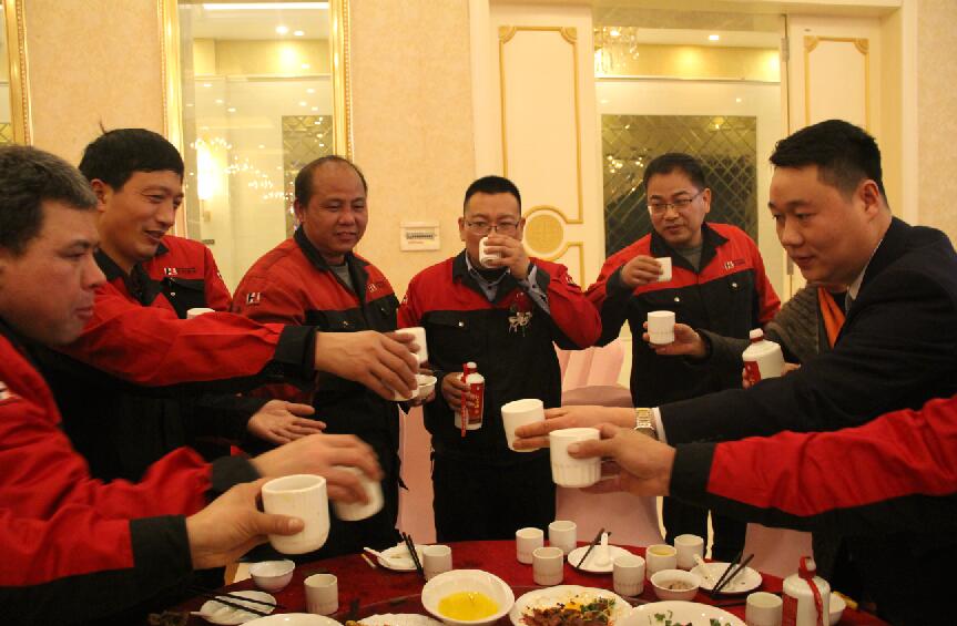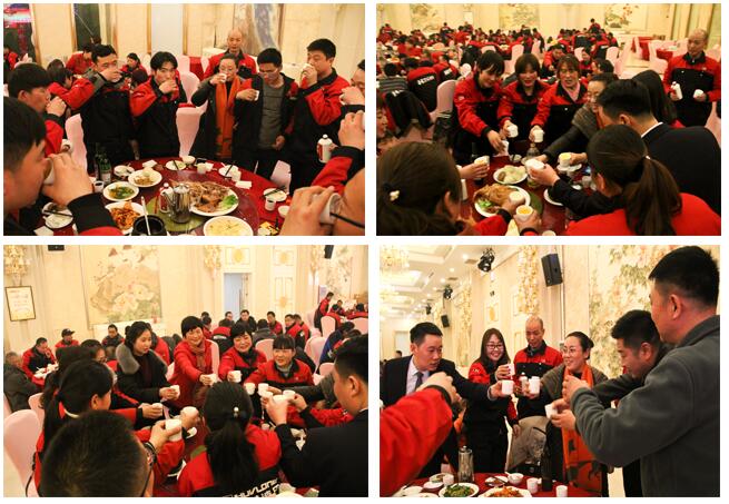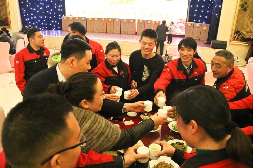 席間,董事長帶領(lǐng)著部門領(lǐng)導(dǎo)來到餐桌前對全體員工表達(dá)感謝和祝福。
